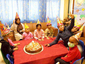 پدر و مادرها هم همراه کودکانشان در این جشن شرکت داشتند و در حالی که کلاه های رنگی بر سر گذاشته بودند، برای کیانا و همه فرزندان محک آرزوی سلامتی و موفقیت کردند.