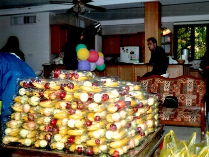 این مراسم در باغی که توسط یکی از یاوران همیشگی محک در اختیار مددکاری شیراز قرار گرفته بود برگزار شد و در کنار مراسم افطاری و دعای کمیل برای خانوادهها، کودکان نیز لحظاتی پر از شادی را تجربه کردند. در حالی که جلسه آموزش و درمان مقابله با مسائل بیماری و زندگی با حضور روانشناس داوطلب محک برای خانواده ها برگزار میشد، کودکان در سوی دیگر باغ بر روی کاغذ بزرگی که روی زمین فرش شده بود با دست و رنگ نقاشی میکردند، صورتهایشان را گریم میکردند و با بادکنکهایی به شکلهای حیوانات بازی میکردند و با گِلِ رس کاردستیهای زیبا میساختند. در پایان مراسم بستههایی شامل خوار و بار و مواد غذایی به خانوادهها اهدا شد و کودکان نیز جوایزی دریافت کردند.