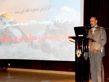 در ادامه، فیلم مستندی از صعود حمید دهقان به قله اورست به نمایش درآمد و همچنین «عباس محمدی» مطلبی در مورد فلسفه کوهنوردی برای حاضران در سالن قرائت کرد.