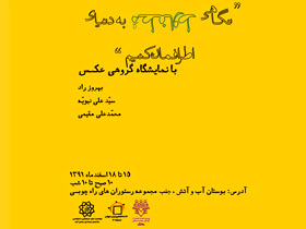 نمایشگاه گروهی عکس با موضوع “نگاهی مطفاوط به دنیای اطرافمان کنیم” 15 تا 18 اسفند ماه 1391 برگزار و 30 درصد از عواید این نمایشگاه به موسسه خیریه محک اهدا خواهد شد.