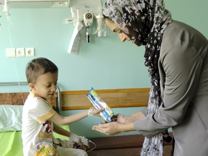 وی در بازدید و ملاقات با کودکان و خانوادههایشان نوید روزهای بهبودی را به آنها داد.