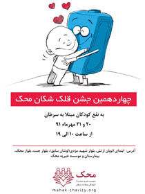 از تمامی شما همراهان همیشگی محک دعوت میکنیم تا با حضور در این جشن همراه ما در حمایت همه جانبه از کودکان محک باشید.