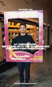 During the campaign, Anbar Panir branches became centers of solidarity as employees proudly wore gold ribbons, and customers received informative leaflets introducing MAHAK’s GO GOLD initiative and inviting them to participate. MAHAK’s campaign photo frames were also displayed in stores, encouraging visitors to take and share photos in support of children with cancer.