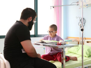 At the same time with the opening school season, MAHAK School is also working. The teachers go to children in each and every room of the hospital to teach and make them ready for taking their exams on time just like their friends in regular schools.